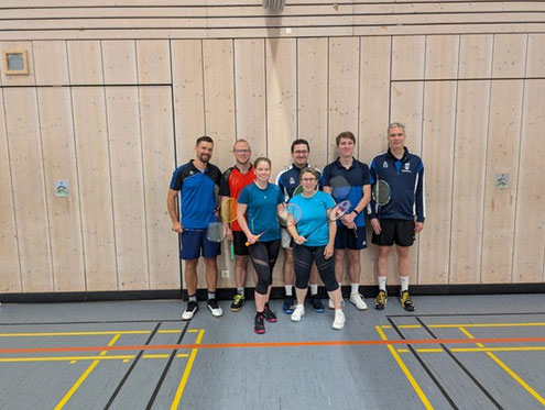 - Bild 1 v.l.n.r.: 1. Mannschaft Jonathan Linke, Fabi Hoffmann, Natascha Hoffmann, Moritz Deinzer, Karine Stofleth, Robert Wieschke und Flo Deinzer