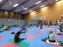 Hauptteil besteht aus Kräftigungsübungen kombiniert mit Mobilisation. Entspannung und Dehnung runden die Stunde ab. Im Training kommen hin und wieder