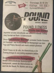 Pound Fitness ist für alle, die Abwechslung in ihr Training bringen und sich richtig auspowern wollen. In toller, motivierter Gemeinschaft trommeln (drumen) wir den Alltagsstress weg - Fitness